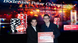 Am Sonntag den 06. März 2016 kamen die besten 31 Spieler von ehemals 92 zurück an die Tische im Austria Casino Bregenz um den Sieger beim €1.000+€80 Bodensee Poker Championship Main Event unter sich auszuspielen. Das erste Ziel des Tages war es, die neun bezahlten Plätze zu erreichen. Der Schweizer Oliver Mader ging als massiver Chipleader ins Finale, doch er erwischte einen rabenschwarzen Tag und musste sich noch vor den Geldrängen verabschieden. Auch Kurt Herman der als zweiter in Chips gestartet war schaffte es nicht ins Geld. Ganz anders lief es da für „MC“ und Jan Loy die den Tag dominierten und sich schließlich tief in der Nacht im Heads Up auf einen Deal einigen konnten. „MC“ durfte sich als Chipleader über den Sieg und €26.905 freuen. Jan konnte für Platz 2 €20.940 seinen Bankroll hinzufügen.