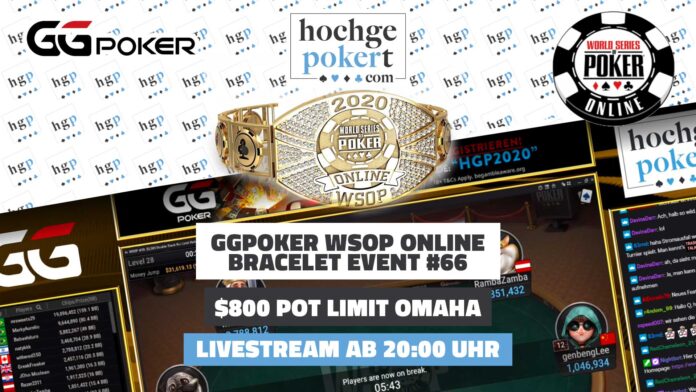 Im Hochgepokert Twitch Streams gibt es Donnerstag ab 20:00 Uhr die Übertragung des $800 GGPoker WSOP Online Bracelet Event #66 Pot Limit Omaha Events.