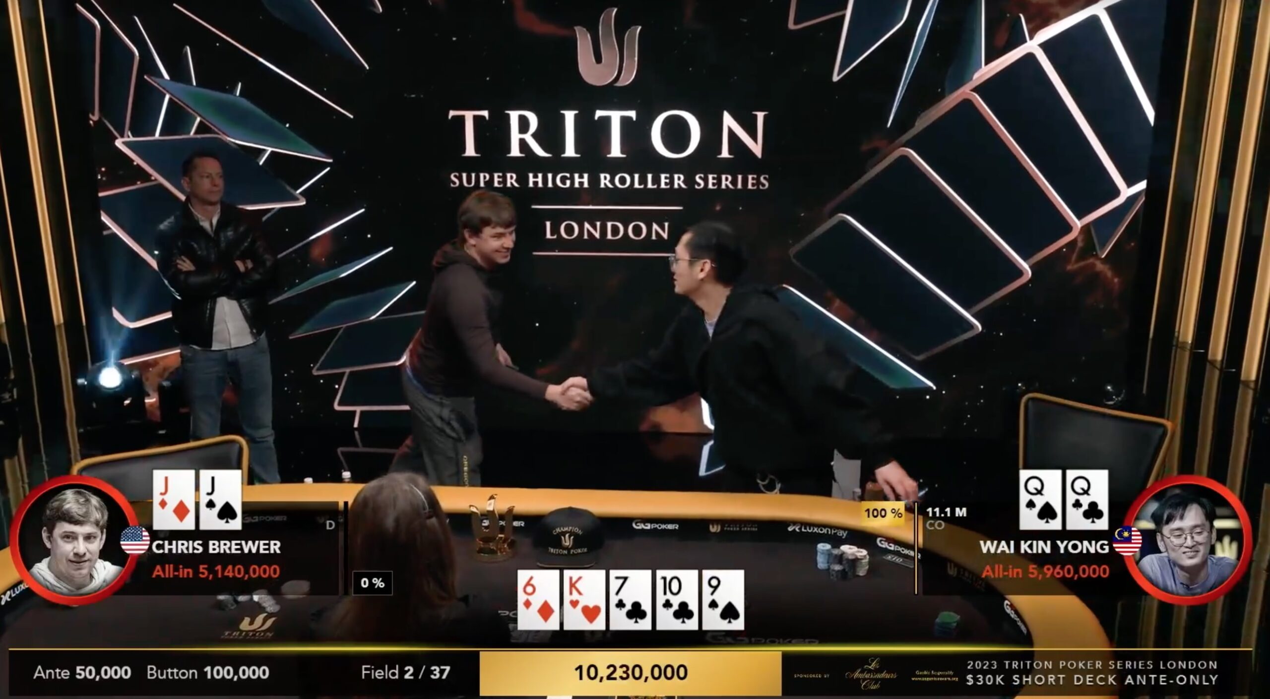 Wie bei Triton Series Tourstopps üblich, werden die Short Deck Events am Ende des Super High Roller Series Festivals gespielt, so auch bei der Triton SHRS London (powered by GGPoker und LuxonPay). Am Donnerstag wurde sowohl das $60k Short Deck Main Event (Event #16) gestartet, als auch das $30k Short Deck (Event #15) entschieden. In Event #15 konnte Wai Kin Yong seine Führung nach Tag 1 auch am Finaltag behaupten und gewann unter 37 Entries $350.000 Siegprämie aus dem $1.110.000 Preispool vor dem US-Amerikaner Chris Brewer. – Im SD Main Event gab es von den 26 Teilnehmer*innen viele Re-Entries, so dass letztendlich nur 4 Spieler*innen vorzeitig ausgeschieden sind, und heute noch 22 in Tag 2 von 3 starten. Die Late Registration ist allerdings auch heute noch 1 Level geöffnet. Derzeit führt Danny Tang im Chipcount vor Jason Koon und Phil Ivey.