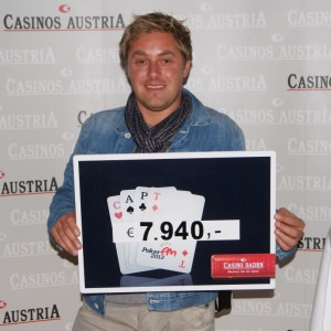 Gestern ging das €300 NLH Turnier bei der Poker EM in Baden über die Bühne. 98 Spieler gingen an den Start und am Ende siegte der Italiener Manfred Mairvongrasspeinten. Für seinen Erfolg kassierte er €7.940.