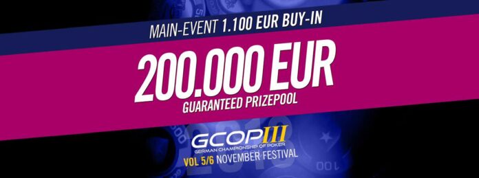 Das GCOP Main-Event ist ein Drei-Tages-Event und endet am Montag mit dem Finaltisch. Der Gewinner des Highroller Events wird einen Abend zuvor gekürt werden. Den Spaß beim „Railen“ kann man sich am Montagabend (Start: 19 Uhr) mit der Teilnahme am letzten Side-Event versüßen. Für ein Buy-In von 75 Euro wird um ein garantiertes Preisgeld in Höhe von 4.000 Euro gespielt.