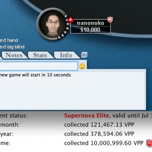 Die freudige Nachricht vom Erreichen der 10 Millionen VPP postete nanonoko auf Facebook: “Like my new 10,000,000 VPP Lifetime badge? I think I’m the 4th person to get this on PokerStars.”