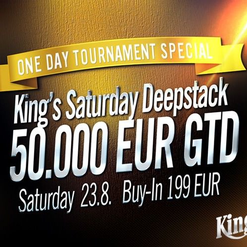 >Sat, 23.08.2014 15:00 King’s Saturdays 50.000 Eur GTD Deepstack NLH 50.000 EUR * 199 EUR 25000 yes