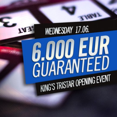 Am Mittwoch den 17. Juni 2015 startet das „King’s tristar Cup“ Wochenende im King’s Casino Rozvadov. Um 20:00 Uhr geht es los mit dem „King‘ tristar Opening 1 x Rebuy €30 Event“ bei dem für ein Buy-In von €60 ein Preisgeld von €6.000 garantiert wird. Jeder Teilnehmer hat die Möglichkeit einen Rebuy für €30 zu kaufen und auch der Re-Entry ist erlaubt. Für Buy-In und Rebuy gibt es jeweils 10.000 in Chips und jeder Level dauert 25 Minuten.