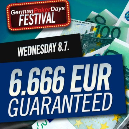 Heute am Mittwoch den 08. Juli 2015 gibt es zur Einstimmung auf das „German Poker Days Festival“ das „Route 66 THNL Freezeout“ Turnier bei dem für ein Buy-In von €66 ein Preispool von €6.666 garantiert wird. Die Teilnehmer starten mit 12.000 in Turnierchips und jeder Level dauert 25 Minuten. Wer möchte darf auch einen Re-Entry nutzen.