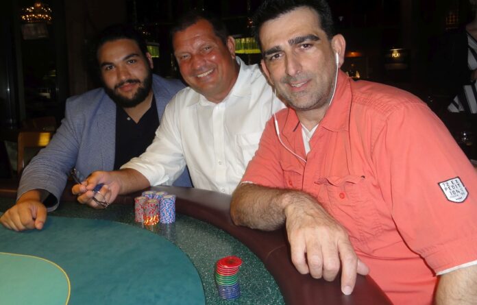 Obwohl nicht ausverkauft wurde auch beim gestrigen Dienstagsturnier wieder Poker auf hohem Niveau geboten. So war es dann auch nicht verwunderlich, dass zu guter Letzt drei Stammgäste des Wiesbadener Pokerfloor´s nach erfolgtem Deal die ersten drei Ränge belegten. Unser Bild zeigt die Herren Wolfgang Werft (1. Platz), „Dr. G“ (2. Platz) und den drittplatzierten „Erwin Adam“.
