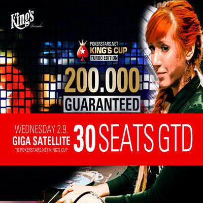 Wed, | 02.09.2015 20:00 | Giga Satellite to PokerStars.net Kings Cup ME Day 1 a 30 Seats Guaranteed !!! | 9.900 EUR in Tickets * | 65 EUR | 7000 | 2x | 25 |
