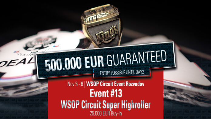 Die Stars der Pokerszene greifen dann ab 18:00 Uhr ins Turniergeschehen ein. Mit dem €25.000 WSOP Circuit Super High Roller Event steht das teuerste Turnier der Serie auf dem Programm. Hier geht es um einen garantierten Preispool von €500.000. Dafür gibt es einen Startingstack von 100.000 und die Level-Dauer beträgt 60 Minuten. Die Option des Re-Entry besteht ebenfalls.