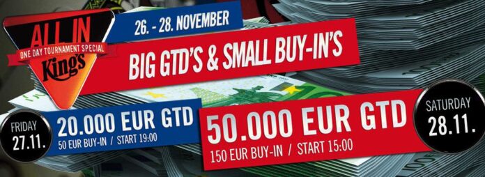Dieses Wochenende veranstaltet das King’s Casino vom 27. – 28. November ein Tournament Special mit großen GTD´s & kleinen Buy-ins!