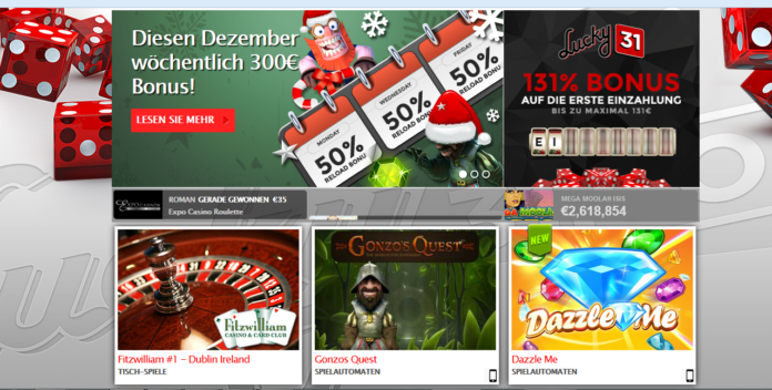 Gute Nachrichten für alle Spieler von Lucky31. Noch bis 31.Dezember bietet die Casino-Seite einen Reload-Bonus von 50% (bis zu €100) an, und das gleich dreimal die Woche!