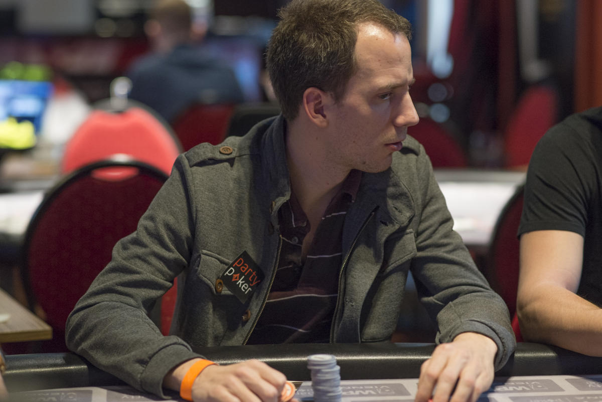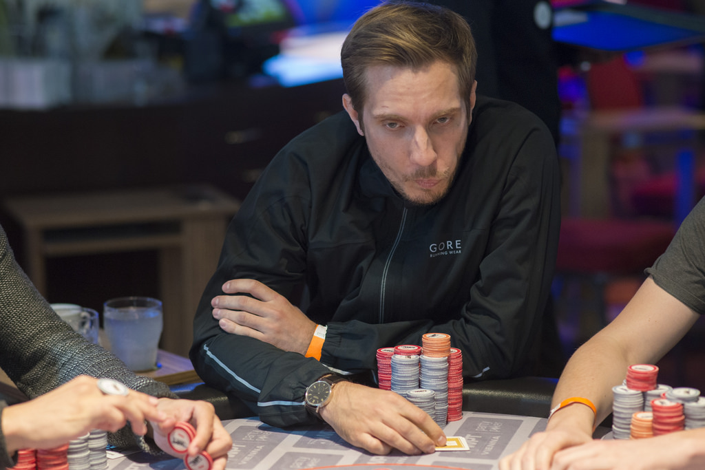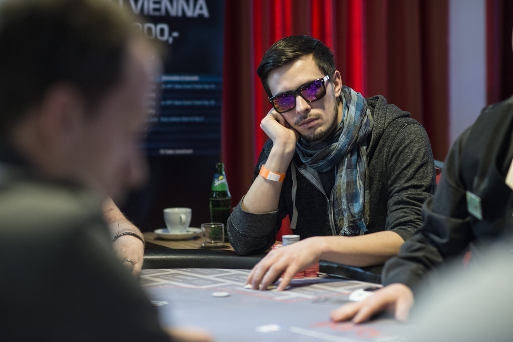Schon nach wenigen Minuten musste sich der Schweizer Domenic Züllig auf Platz 16 für €7.950 verabschieden. Er pushte seine letzten 15 Big Blinds mit