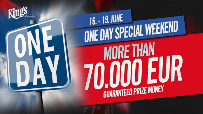 Davon werden 15.000€ am Freitag beim King’s Big Friday NLH und 50.000€ am Samstag beim 1-day Special NLH ausgeschüttet. Das Turnier am Freitag um 20.00 Uhr hat ein Buy-In von 75€ + 10€, am Samstag um 15.00 Uhr müssen die Spieler 135€ + 15€ bezahlen, um teilnehmen zu können.