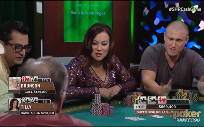 Beim Super High Roller Cash Game im Aria Resort & Casino bekam die Schauspielerin und Ehefrau von Poker Pro Phil Laak, Jennifer Tilly (USA) einen massiven Cooler. Gespielt wurde THNL mit den Blinds $1.000/$2.000 Ante $100 (Minimum Buy-In $250.000).