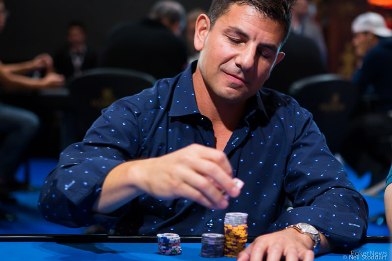 Gleich in der siebten Hand des Tages musste sich Shortstack Haralabos Voulgaris (CAN) auf Platz 8 verabschieden. Er setzte seine letzten 11 Big Blinds auf