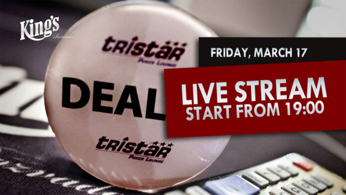 Am Freitag den 17. März 2017 gibt es ab 19:00 Uhr einen Livestream vom tristar High VIP Sit & Go,direkt vom TV-Set des King’s Rozvadov. Der Stream wird 30 Minuten zeitversetzt mit Hole Cards übertragen. Auf einen Kommentator wird verzichtet, dafür wird der Tabe Talk hochgedreht. Die Spieler starten mit 50.000 (1.000 Big Blind) in Chips und die Blinds werden alle 20 Minuten erhöht. Ein Re-Entry ist nicht möglich. Bei dem tristar High VIP Sit & Go handelt es sich um ein Einladungs-Turnier, an dem acht tristar Team Player teilnehmen. Auf den Sieger wartet ein Preisgeld von €1.000 und der Runner-Up bekommt noch €600.