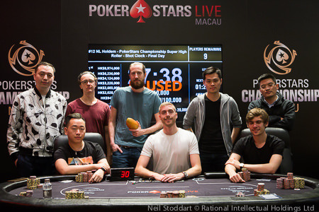 Heute ging beim PokerStars Championship Macau das HK$ 400.000 Super High Roller Event zu Ende. 88 Entries hatten einen Preispool von ca. €4.100.000 zusammen getragen. 14 Spieler hatten sich für den Finaltag qualifiziert. Da 13 Plätze bezahlt wurden fingen wir direkt auf der Bubble an. Gleich in der zweiten Hand erwischte es Behzad Ahadpour und die restlichen Spieler durften sich schon über einen ordentlichen Cash freuen. Manig Loeser (GER) war von Rang 8 in den Tag gestartet und übernahm sogar den Chiplead. Schlussendlich belegte er Platz 3 für ca. €518.000. Als Chipleader war Steve O’Dwyer vor Fedor Holz (GER) in den Tag gestartet. Diese beiden standen sich dann auch im Heads Up gegenüber. Man einigte sich auf einen Deal und spielte nur noch einen kleinen Restbetrag und den Titel aus. Hier konnte sich Steve durchsetzen und durfte ca. €1.060.000 und die Trophy in Empfang nehmen. Fedor bekam als Runner Up noch ca. €848.000.