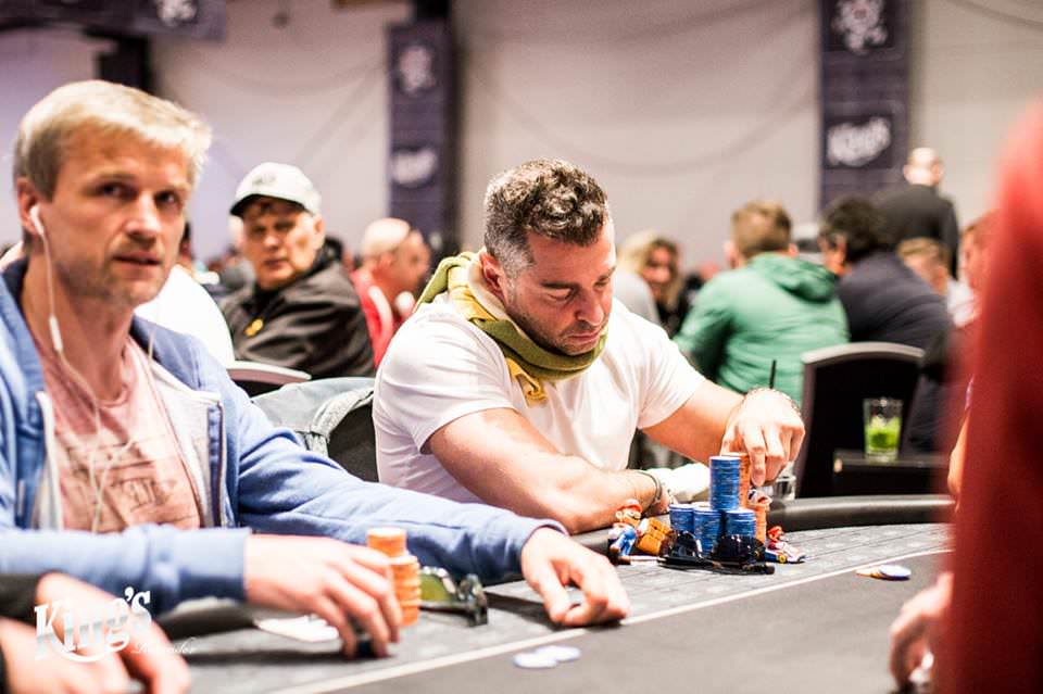 Am Ostersonntag ging es im King’s Rozvadov mit dem Tag 2 des €270+€29 German Poker Tour Main Event weiter. 235 Spieler hatten sich qualifiziert und 57 Akteure machten während des ersten Levels von Tag 2 noch Gebrauch von der Late-Registration oder dem Re-Entry. Damit kam man auf insgesamt 753 Entries und der garantierte Preispool von €200.000 (abzüglich Tournament Fee €193.144) sollte unter den besten 79 ausgespielt werden. Der Min Cash bringt €657 und auf den Champion warten beachtliche €37.054. Trotz der sehr gut spielbaren Deepstack Struktur war das Teilnehmerfeld nach zwei Stunden schon um die Hälfte reduziert. Es dauert gut sechs Stunden bevor im Level 21 endlich die Bubble platze. Bis zum Ende des Tages dauerte es noch über viereinhalb Stunden. 22 Pokercracks durften schließlich ihre Chips für das Finale eintüten. Den Chiplead konnte sich der Österreicher Othmar Bissig mit 4.700.000 (59 Big Blinds) vor seinem Landsmann Philip Steger mit 3.405.000 (42,5 Big Blinds) sichern.