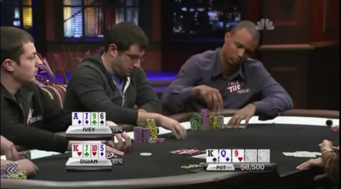 Trickeiche PLO Hand zwischen Phil Ivey und Tom Dwan
