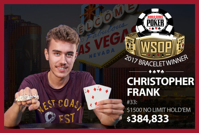 Da ist das Ding!!! Christopher Frank holt bei der WSOP in Las Vegas das erste Gold für Deutschland. Der erst 22-jährige Deutsche setzte sich in der Nacht zu heute beim Finale des $1.500 No Limit Hold´em Event gegen die noch 21 übrig gebliebenen Gegner durch und fügte seiner Bankroll $384.833 hinzu.