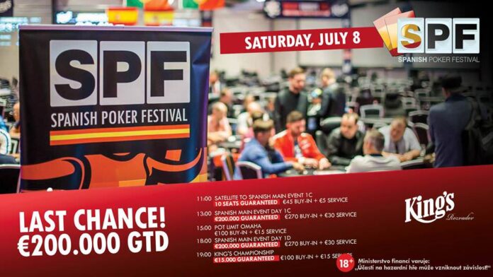 Im King’s laufen während des Spanish Poker Festival rund um die Uhr Cash Games. Hier geht der Spaß bereits bei Blinds €1/€3 THNL oder €2/€2 PLO und einem Minimum Buy-In von €100 los.