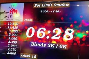 Bei der Poker EM im Austria Casino Velden am Wörthersee fiel am Sonntagabend die Entscheidung beim €330 Pot Limit Omaha Rebuy Side Event. 83 Spieler bauten hier einen Preispool von €62.100 auf, der auf neun Plätze verteilt wurde. Am Ende gab es einen Deal der besten Drei. Hier holte sich der Bremer Christian Stratmeyer den Titel und ein Preisgeld von €14.100. Außerdem schafften es noch Spieler wie Thomas Pohnke oder Hossein Ensan in die Geldränge. Das offizielle Turnierergebnis liegt uns leider noch nicht vor.