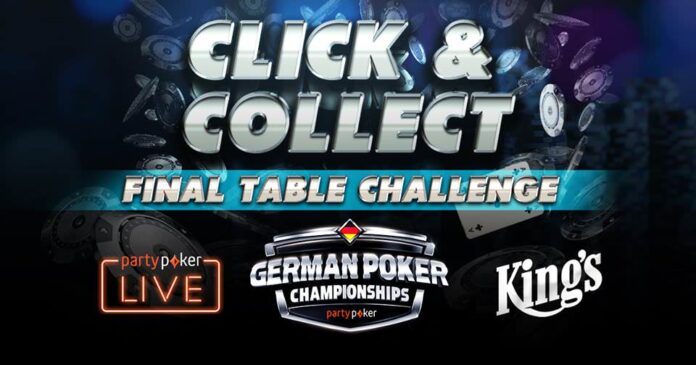 Bei partypoker jagt derzeit eine coole Promo die nächste. Die neuste Action nennt sich „Click&Collect Final Table Challenge“. Wenn ihr euch bei partypoker einloggt wird euch die „Click&Collect“ Action angeboten. Einfach mitmachen und ein $2,20 Satellite Ticket für die German Poker Championship abholen. Jeder der es schafft, sich über ein $2.20 Ticket bis zum Live-Event ins King’s Rozvadov zu spielen und dort dann an den Final Table kommt, an den verschenkt partypoker ein $10.000 Package für die partypoker Caribbean Poker Party im November. Die Spieler die es nach Rozvadov schaffen bekommen Vorort Click&Collect Patches, die sie das ganze Turnier über tragen sollten. Bis jetzt haben sich schon zwölf Spieler über Click&Collect für das Live-Event in Rozvadov qualifiziert.
