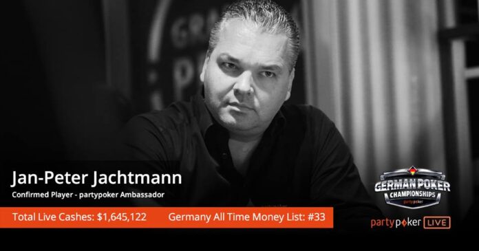 Am 10. August 2017 startet im King’s Rozvadov das €2.000+€200 partypoker German Poker Championship Main Event mit drei Starttagen Eins. Im Main Event wird ein Preisgeld von €1.000.000 garantiert. Schon seit einigen Wochen laufen die Phase 1 Turniere live im King’s und online auf partypoker. Am Montagabend um 21:00Uhr gibt es beim $250 Phase1 GPC Turnier auf partypoker noch zusätzlich eine Kopfgeldprämie auf partypoker Pro Jan-Peter Jachtmann. Wer Jan-Peter aus dem Turnier werfen kann, gewinnt ein €220 Ticket. Darüber hinaus erhält man, wenn man sich für Tag 1 qualifiziert, über die „The first 100 – Cash Back“ Promo sein Buy-In zurückerstattet. Los geht es mit einer Startdotation von 100.000 und es werden 21 Levels à 10 Minuten gespielt (oder bis noch 10% des Teilnehmerfeldes im Turnier sind). Die qualifizierten Spieler nehmen dann ihren Stack mit in Tag 1. Für Spieler die sich im King’s direkt in Tag 1 des €2.000+€200 partypoker GPC Main Event einkaufen, beträgt die Startdotation im King’s 1.000.000. An jedem Abend in dieser Woche wird es bei der Phase1 Kopfgeldprämien auf partypoker Pros geben. Diese Woche lassen sich noch Marcel Luske (NED), Kirsten Bicknell (CAN) oder auch Natalia Breviglieri (GBR) jagen.