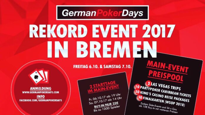Ihr seid noch nicht überzeugt? Damit das Event wirklich einzigartig wird, haben sich die German Poker Days auch dieses Mal nicht lumpen lassen! Neben professionellen Kartengebern und dem besonderen Flair im Bremer Schuppen 2, erwarten euch wieder Sexy Hostessen, eine Verlosung, eine Versteigerung und mehrere Side Events an beiden Tagen. Auch hier werden Reisen und weitere besondere Preise ausgespielt. Hotels gibt es in näheren Umgebung bereits ab 80€ die Nacht.