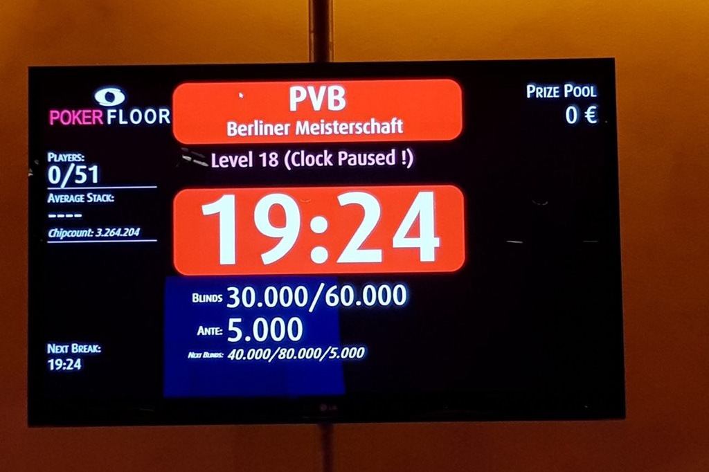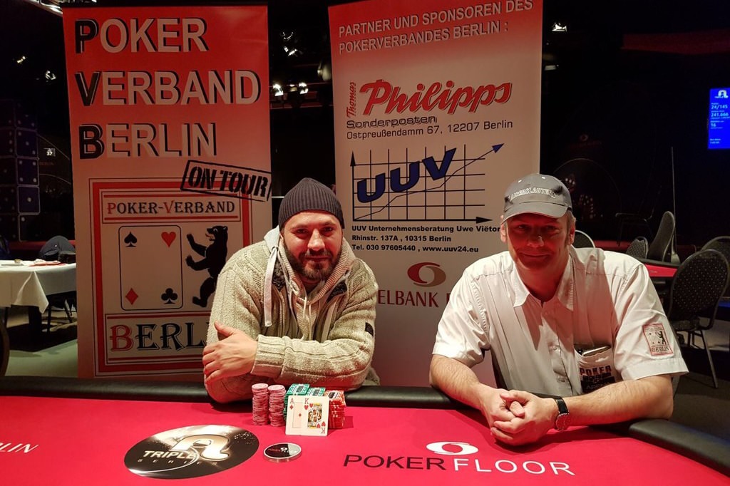 Am Sonntag wurde in der Spielbank Berlin ab 16:00 Uhr noch das Finale der Pokereinzelmeisterschaft des PVB Poker-Verband Berlin e.V gespielt. 51 Spieler kämpften um den Titel. Nachdem sich Vanja Milic auf Platz 3 verabschieden musste, standen Abdulrahim Yildirim und Andreas Jost sich im Heads Up gegenüber. Abdulrahim hatte das bessere Ende für sich und holte sich den Titel.