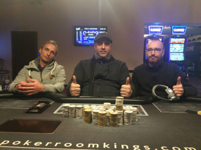 Neben dem WSOP Circuit Opening Event gab es am Samstagabend im King’s Rozvadov noch das €100+€15 King’s Hold’em Adventure Side Event. 175 Teilnehmer und 42 Re-Entries sorgten für ein Preisgeld von €20.615, das auf die besten 23 verteilt wurde. Am frühen Sonntagmorgen gab es einen Deal der letzten Sechs, bei dem sich der Deutsche „Zarathustra“ den offiziellen Sieg und ein Preisgeld von €2.952 holten konnte.