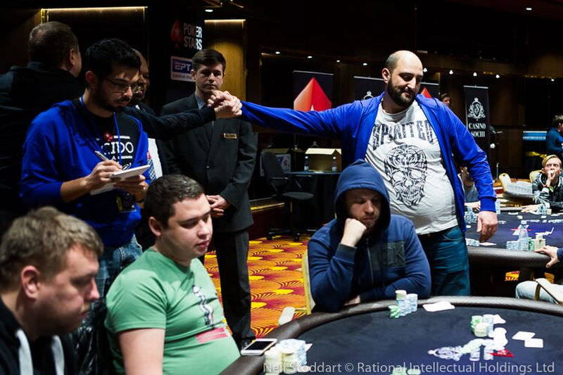 Im Casino Sochi (Russland) startete am Dienstagmittag der Tag 4 des RUB192.000/€2.715 PokerStars European Poker Tour Main Event. 40 der ehemals 861 Entries kamen zurück an die Tische und gingen in den Kampf um sich einen Teil des RUB146.171.453/€2.066.724 großen Preispools zu sichern. Leider waren keine deutschsprachigen Spieler mehr im Turnier. Als beste DACH-Spielerin belegte die Schweizerin Federica Hürzeler-Milani Platz 106 für RUB318.000/4.496. Nach nicht ganz vier Levels à 90 Minuten standen die letzten 16 Akteure fest, die am Tag 5 in den Kampf um die Plätze am Final Table gehen. Einen massiven Chiplead konnte sich der Russe Mikhail Plakkhin mit 3.046.000 (127 Big Blinds) sichern. Sein nächster Verfolger ist der Luxemburger Sihao Zhang der 2.193.000 (91,5 Big Blinds) eintüten durfte. Sihao sowie ein Usbeke und ein Armenier sind die drei einzigen Spieler im Tag 5 die nicht aus Russland kommen. Alle 16 haben schon ein Preisgeld von RUB1.206.000/€17.051 sicher. Auf den Sieger warten am Donnerstag im Finale RUB27.300.000/€385.996 und der $30.000 Platinum Pass von PokerStars.