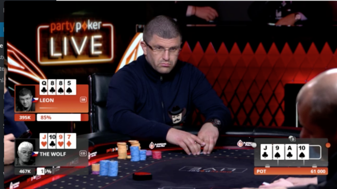 Beim Pot-Limit Omaha Cashgame turnte Leon eine Straight bis zur Dame, die ausreichte, um die Two Pair von „The Wolf“ auch auf dem River zu schlagen. Dennoch rutschte der $121.000 Pott am Ende zu „The Wolf“ und keinem der Beteiligten viel es auf. Leon, der sehr wohl wusste, dass er eine Straight hielt, glaubte sein Gegner hätte ein bessere Straight gerivered. „The Wolf“ wehrt sich trotz schlechterer Hand nicht gegen das Geschenk des Dealers und nimmt das Geld dankend entgegen.
