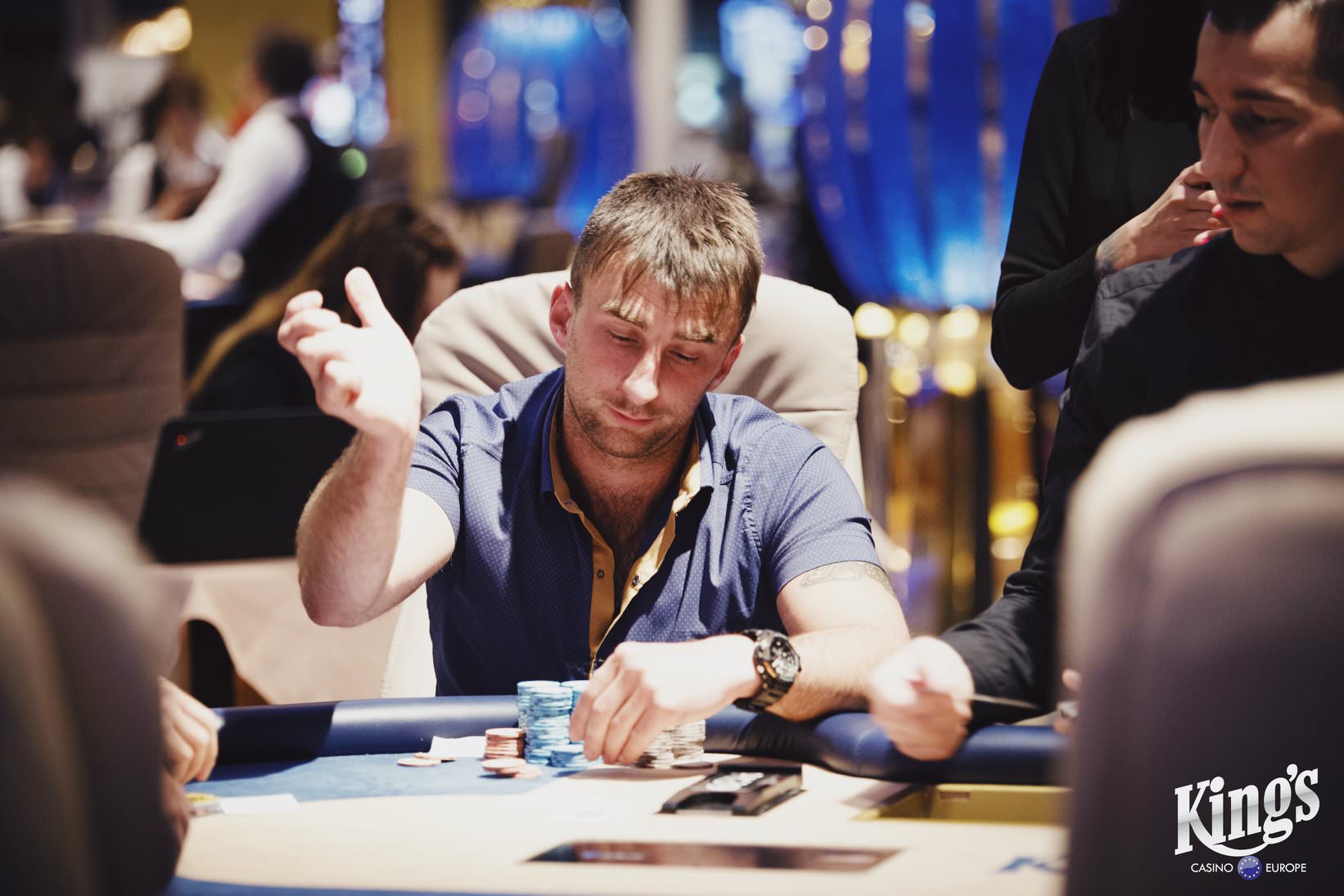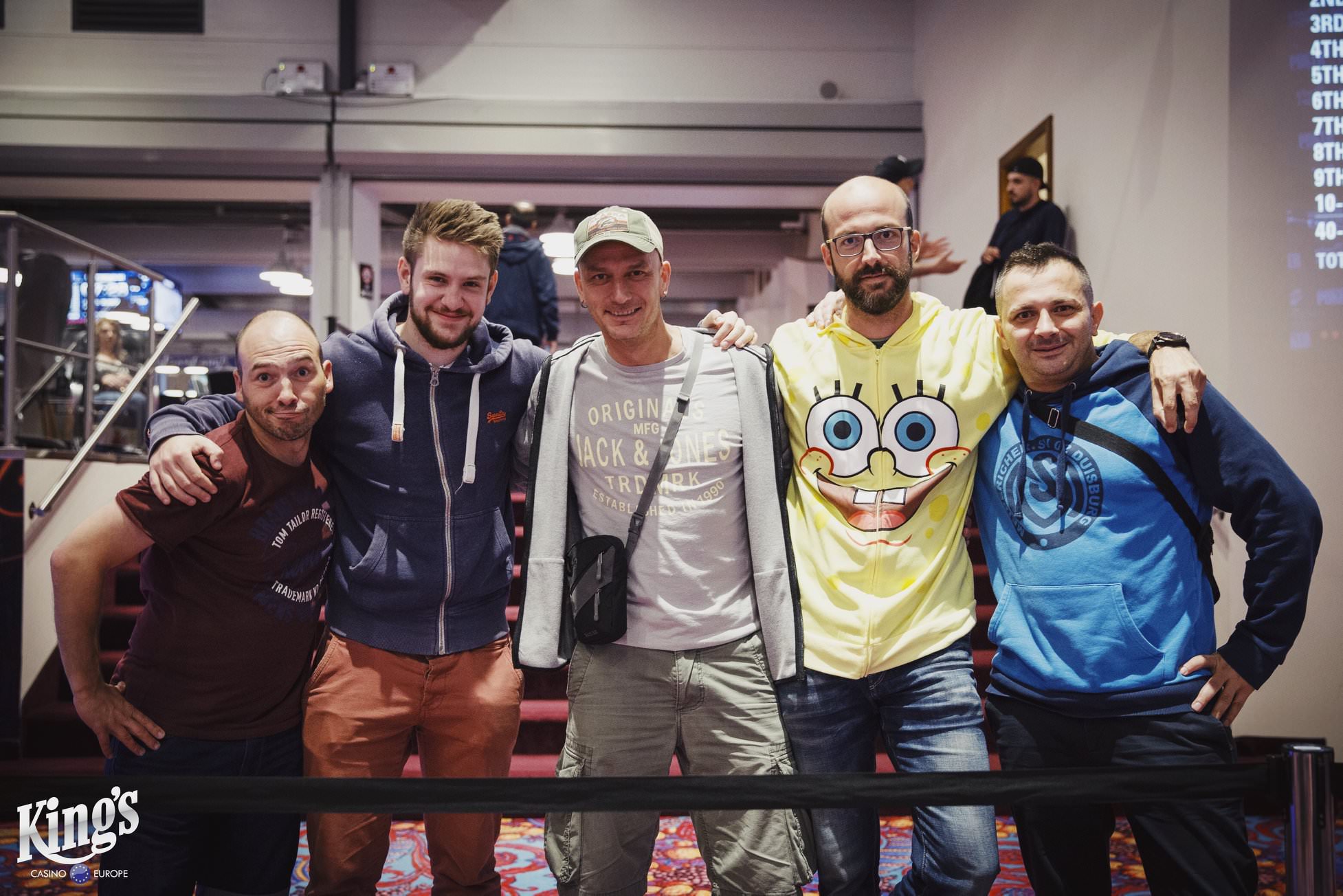 Am Pfingstsonntag gab es im King’s Rozvadov um 10:00Uhr die letzte Möglichkeit in den €150+€15 Monsterstack Madness Main Event am Tag 1e einzusteigen. Der Tag 1e wurde als Turbo Flight mit einer Startdotation von 100.000 und 16 Levels à 15 Minuten gespielt. 128 Spieler ließen sich die letzte Chance nicht entgehen und mit weiteren 37 Re-Entries kam man insgesamt auf 673 Entries, so dass die Garantiesumme von €100.000 (abzüglich Tournament Fee €95.000) unter den besten 71 Akteuren ausgespielt wurde. Gegen 14:30Uhr startete das Finale und gegen 19:00Uhr platze dann die Bubble. Der Min Cash brachte ein Preisgeld von €364. Erst am frühen Sonntagmorgen kam es zur Entscheidung als die letzten Drei sich gegen 05:00Uhr auf einen Deal einigen konnten und nur noch einen Restbetrag ausspielten. Hier konnte sich dann die beiden Deutschen Sven Szamiteit und Seven Zuparic die Plätze Eins und Zwei sichern.