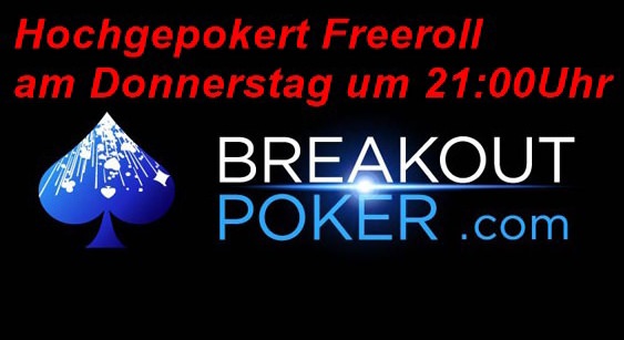 Heute Donnerstag den 31. Mai um 21:00 Uhr findet auf Breakout Poker das nächste $500 Hochgepokert Freeroll statt. Das Monthly Freeroll befindet sich bereits in der Turnierlobby des Pokerraums und auch die Anmeldung ist schon möglich. Um teilzunehmen braucht ihr lediglich uns
