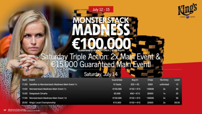 Wie erwähnt habt ihr heute ab 13:00 Uhr die Möglichkeit euch in Tag 1c für €150+€15 einzukaufen, ab 17:00 Uhr startet Tag 1d und am Sonntag um 10:00 Vormittag wird die letzte Option im Monsterstack Madness Main Event 1e Turbo angeboten. Sämtliche Informationen findet ihr auf der King’s Casino Homepage: