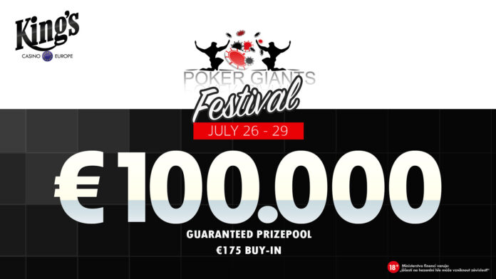 Das nächste große Pokerfestival im King’s Rozvadov steht vor der Tür. Vom 26.- 29. Juli 2018 kommt der Sachpreisturnier Veranstalter Poker Giants mit seinen Spielern in Europas größten Pokerroom und hat reichlich Poker Action im Gepäck. Das Highlight des Festival ist der €155+€20 Poker Giants Main Event, der ein Preisgeld von €100.000 garantiert. Auf die Teilnehmer wartet Deepstack Poker mit einer Startdotation von 50.000 und 30 Minuten Levels (im Finale 40 Minuten). An vier Starttagen Eins gibt es von Donnerstag bis Samstag die Möglichkeit sich für das Finale am Sonntag zu qualifizieren. Der Finaltag (Start 13:00Uhr) wird dann am Sonntag ab ca. 18:00Uhr im Livestream übertragen. Aber auch die Side Events haben es in sich. Sechs Side Events mit Buy-In zwischen €50 und €330 werden angeboten und hier geht es nochmal um garantierte Preisgelder von €58.000. Außerdem gibt es die Möglichkeit bei den €35+€5 Satellites Main Event Tickets zu gewinnen. Insgesamt sind da 35 Seats garantiert.