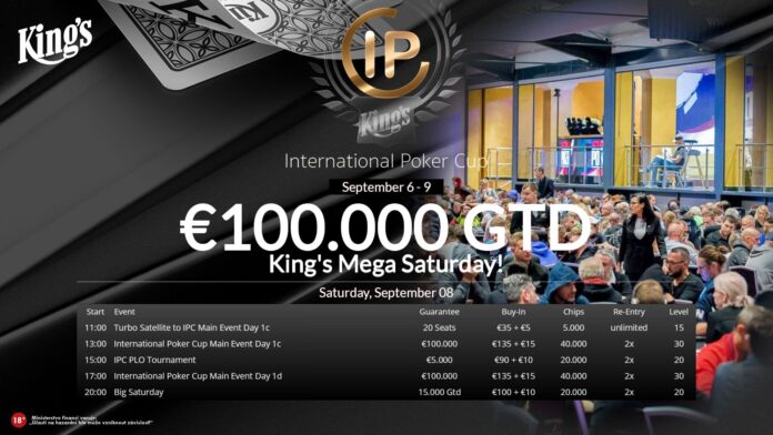 Heute ab 11:00 Uhr habt ihr die Möglichkeut euch für €35+€5 beim Turbo Satellite für Tag 1c zu versuchen. Ab 13:00 Uhr startat Tag 1c des Main Events und um 17:00 Uhr besteht die letzte Chance sich in das €100.000 GTD Main Event einzukaufen. Sämtlichen weiteren Informationen rund um das Poker Angebot im King’s Casino findet ihr HIER: