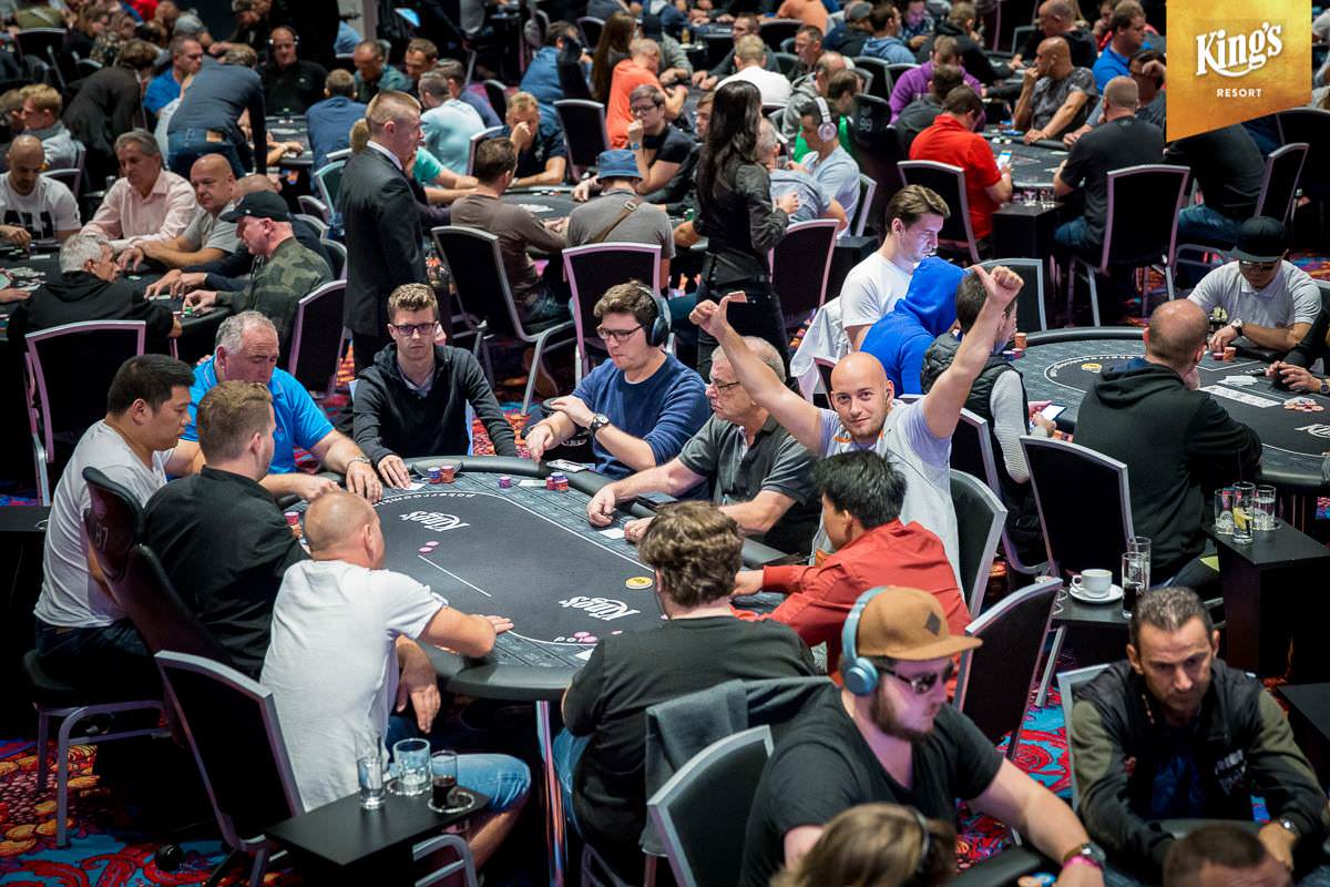 Beim Dutch Classics Festival im King’s Resort Rozvadov ging es bereits an den beiden ersten Starttagen des €175+€20 Main Event mit 710 Entries richtig rund. Am Samstag um 12:00 Uhr ging es dann weiter mit Tag 1c und hier wurde es mit 452 Teilnehmern und zusätzlichen 94 Re-Entries wieder richtig voll. Wie schon die Tage zuvor gab es einen Starting Stack von 50.000 und es wurden 13 Levels à 40 Minuten gespielt. Am Ende von Tag 1c konnten noch 159 Akteure ihre Chips für das Finale zählen. Den Chiplead von Tag 1c holte sich Michael Heinz Broschek aus Deutschland mit 788.000 (262,5 Big Blinds). Gegen 17:00 Uhr begann dann der letzte Starttag Eins. 307 Spieler und 126 Re-Entries erhöhten die Total-Entry-Zahl auf unglaubliche 1.689 und bevor zum Start des Finale die Late-Registration schließt, liegen schon €280.796 im Preispool. Tag 1d überstanden dann 143 Pokercracks und damit sind insgesamt 494 Spieler für das Finale qualifiziert (4 Spieler haben sich doppelt qualifiziert). Der Chiplead von Tag 1d ging an den Griechen Christos Chnaris mit 437.500 (146 Big Blinds). Als Overall-Chipleader startet am Sonntag Michael Heinz Broschek mit 788.000 (262,5 Big Blinds).