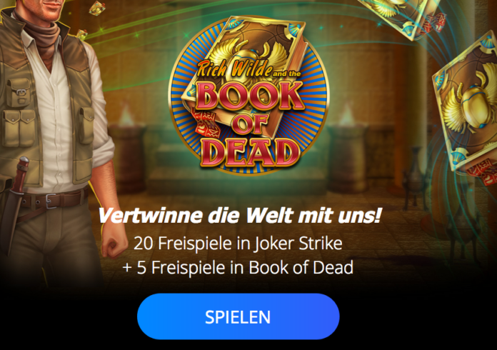 Jeder Neukunde erhält einen Bonus von 100% bis zu einem Betrag von €100, dann gibt es noch 20 Freispiele im Slot Joker Strike und nochmals 5 weitere Freispiele bei Book of Dead. Um diesen Bonus und Freispiele zu erhalten, müsst ihr euch über diesen LINK anmelden und den Bonuscode: pokert verwenden.