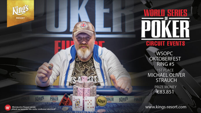 Gestern ging es in den finalen Tag und am Ende konnte sich Michael Strauch aus Deutschland im Heads-Up gegen Frederick Forsyth aus Österreich durchsetzen. Neben dem WSOPC Ring darf sich Strauch über ein Preisgeld in Höhe von €83.851 freuen, der Runner-Up Forsyth nimmt immerhin noch €47.508 mit nach Hause. Der gesamte Preispool wurde auf die 223 besten Spieler verteilt, wobe ein Min-Cash bei €569 startete.