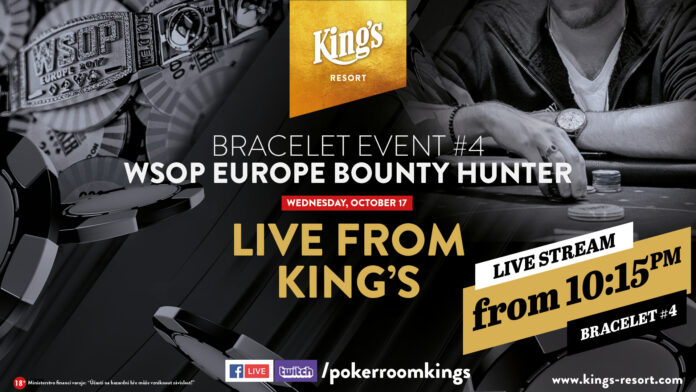 Im King´s Resort Rozvadov geht es heute bei der WSOP Europe um das dritte Bracelet. Allerdings wird heute nicht der PLO-Champion in Event #3 gesucht, da hier heute erst der zweite Turniertag gespielt wird, sondern der beste Bounty Hunter. Das eintätige Kopfgeld-Turnier der WSOPE beginnt heuteab 17 Uhr, liveeingestiegen wird aber erst um circa 22:15 Uhr nachdem die ersten Level des Turniers gelaufen sind.