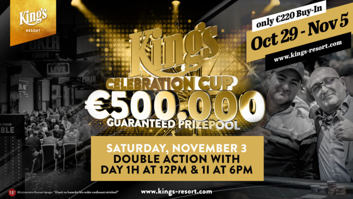 Etwas später am Freitag wurden Tag 1G veranstaltet und es kauften sich 280 Spieler ein plus 80 Re-Entries wurden bezahlt. Auch in diesem Flight geht der Chiplead in die Slowakei, Robert Novak beendet den Tag mit 576.000 Chips, vor Richard Bodis aus Ungarn mit 548.000 Chips. Als bester Deutscher auf Position 4 beendete Andreas Lösche mit 450.000 Chips den Tag. In Summe konnten 52 Spieler ihre verbliebenen Chips eintüten. Bis jetzt wurden 1.341 Entries bezahlt, somit noch ein weiter Weg bis der garantierte Preispool in Höhe von €500.000 erreicht wurde. Heute ab 12:00 Uhr und dann etwas ab 18:00 Uhr starten zwei weitere Flights, bevor am Sonntag um 10:00 Uhr der letzte Turbo Flight im King’s Resort angeboten wird. Sämtlichen weiteren Informationen findet ihr auf der King’s Resort Homepage: