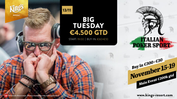 Heute Abend ab 19 Uhr steht ein weiteres Turnier der King´s Big Reihe auf dem Turnierplan. Beim King´s Big Tuesday geht es dann für ein Startpreis von €70 + €10 um mindestens €4.500.