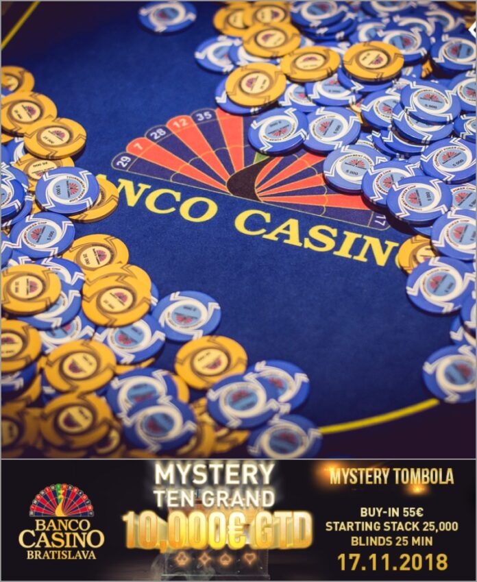 Jede Menge Live-MTT-Action erwartet die Pokergäste an den kommenden Wochenenden im Banco Casino Bratislava.Den Auftakt macht am Freitag den 17. November das Mystery Ten Grand, bei dem es für ein Buy-In von €55 um mindestens €10.000 Preisgeld gehen wird.Für sein Startgeld bekommt jeder Teilnehmer 25.000 Chips, die Blindlevel sind auf 25 Minuten gestellt. Nach der Registrierung wird zudem eine Mystery Tobola veranstaltet, bei der alle Turnierteilnehmer mit etwas Losglück tolle Preise gewinnen können.