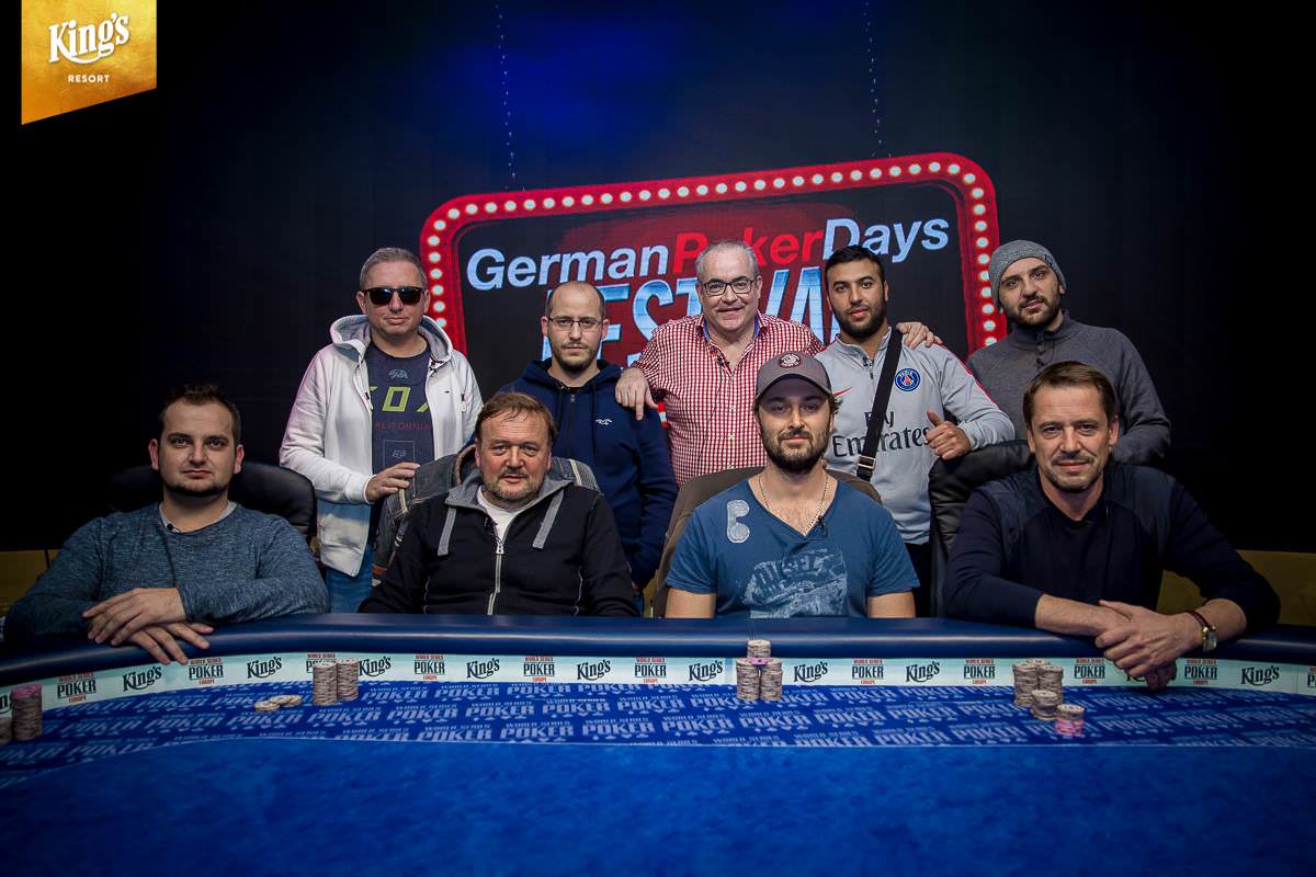 Am Sonntag ging es im King’s Resort um 13:00 Uhr für 404 Spieler mit dem Finaltag des €155+€20 German Poker Days Main Event los. Das erste Ziel des Tages war es die 215 bezahlten Plätze zu erreichen und sich so seinen Anteil am €312.611 großen Preispool zu sichern. Gegen 15:30 Uhr begann das Bubble Play und das zog sich gut 20 Minuten hin, bis alle verbliebenen Akteure €385 sicher hatten. Tief in der Nacht standen sich dann der Grieche „Olorin“ und der Spanier „GOMETZGER“ im Heads Up gegenüber. Man einigte sich auf einen Deal und „Olorin“ wurde zum offiziellen Sieger für ein Preisgeld von €47.681 ernannt.