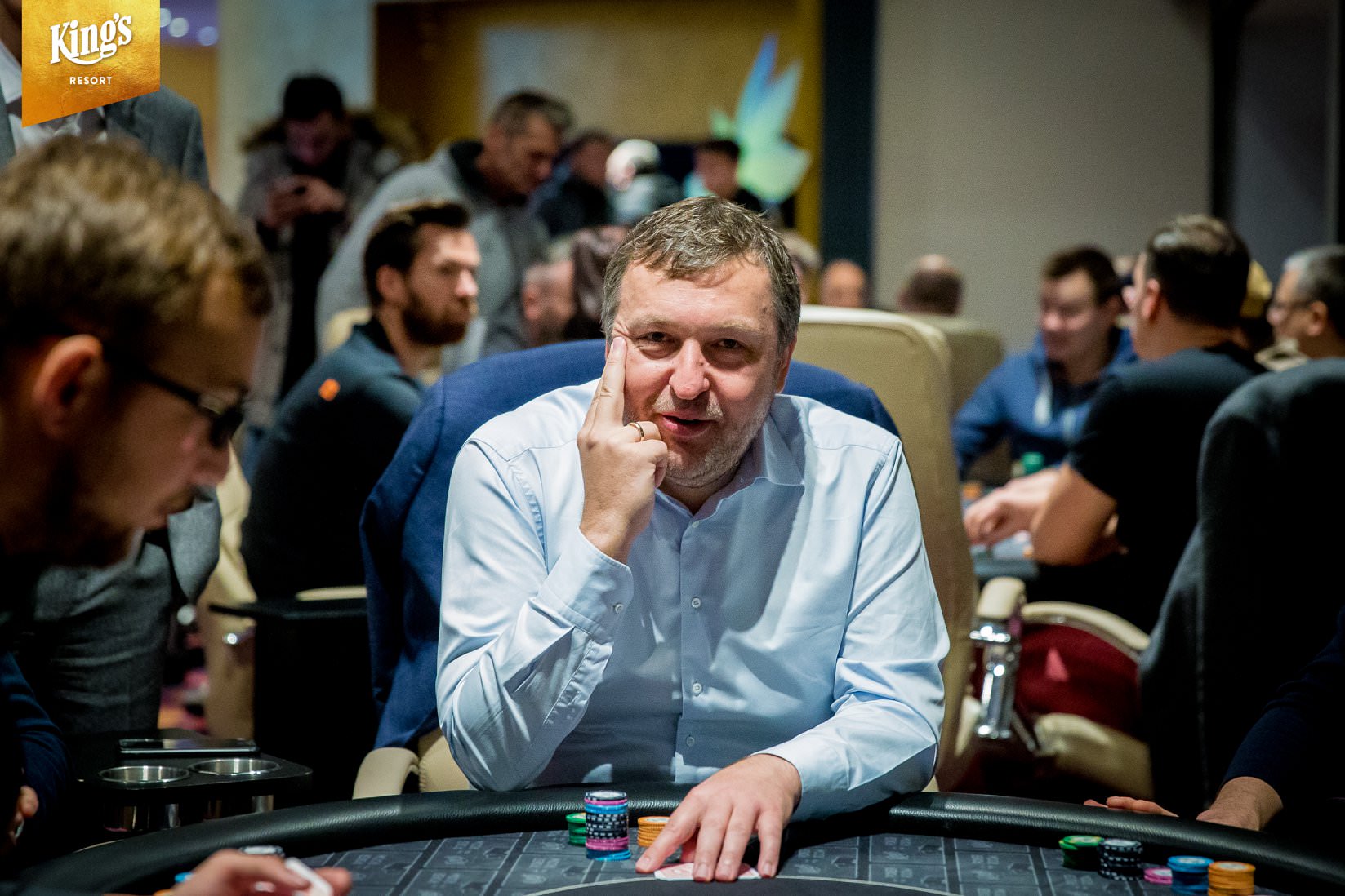 Am Samstag feierte Poker Legende Tony G. im King’s Resort seinen Geburtstag mit dem €1.000+€100 Pot Limit Omaha Birthday Tournament, bei dem ein Preisgeld von €200.000 garantiert wird. Als Special gibt es bei dem Turnier, für den Spieler der die meisten Gegner aus dem Turnier befördern kann (Tony G Bustout zählt dreifach), eine Rolex Uhr geschenkt. 107 Omaha-Cracks waren hier angetreten und hinzu kamen noch 22 Re-Entries. Damit kommt man erst auf insgesamt 129 Starts, doch die Late-Registration ist noch bis zum Ende des zweiten Levels am Finaltag geöffnet. Das Teilnehmerfeld war stark besetzt, so sahen wird unter anderen, Tony G., Leon, Renato, Jan-Peter Jachtmann, „El Turco“, Vlado Sevo, Johann Roesnick, Serok Kilic, Erich Kollmann, Bruno Fitoussi, Bertrand „Elky“ Grospellier, Alexander Rettenbacher oder auch Thomas Pohnke an den Tischen. Nach elf gespielten Levels à 30 Minuten durften noch 55 Akteure ihre Chips für das Finale eintüten. Den Chiplead konnte sich Vittorio Castro (ITA) mit 327.200 (163,5 Big Blinds) sichern. Geburtstagskind Tony G. erwischte es schon am Tag 1, doch er hat noch am Finaltag die Möglichkeit vom Re-Entry Gebrauch zu machen.