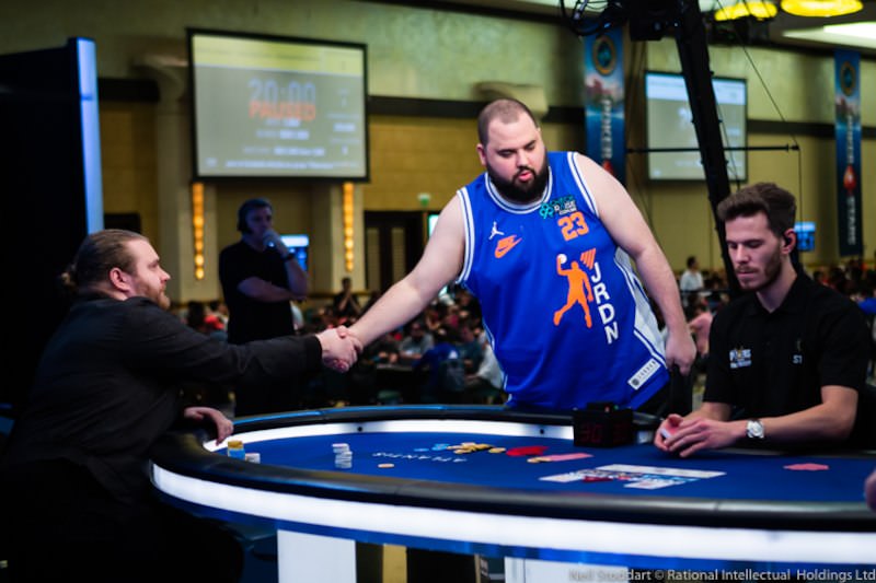 Das $100.000 PokerStars Caribeean Adventure Super Highroller Event lockte am Freitag 43 Spieler an und mit 18 Re-Entries kam ein Preispool von $5.918.220 zusammen, der unter den besten Acht verteilt wurde. Nur fünf Akteure schafften es in den Finaltag. Als einziger Deutscher konnte Steffen Sontheimer auf Platz 7 einen Cash für $301.820 einfahren. Als Chipleader startete US-Pro Chris Hunichen in den Finaltag. Alle Finalisten hatten schon ein Preisgeld von $485.300 sicher. Auf den Champion warteten satte $1.775.460. Als erster musste der Brite Talal Shakerchi das Turnier auf Platz 5 für $485.300 wieder verlassen. Er pushte auf ein Open Raise von Sam Greenwood