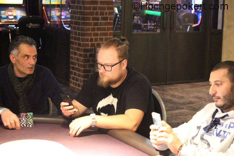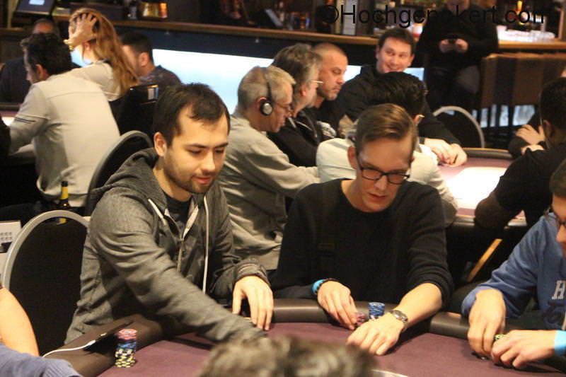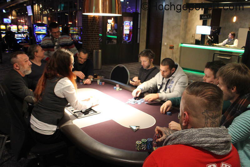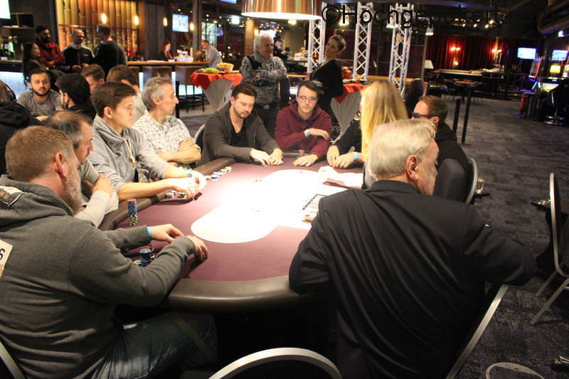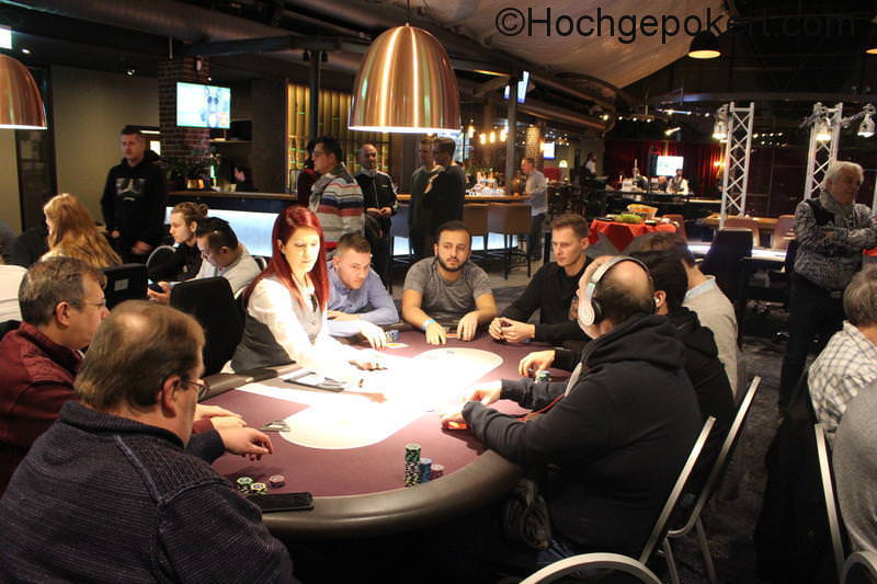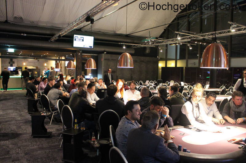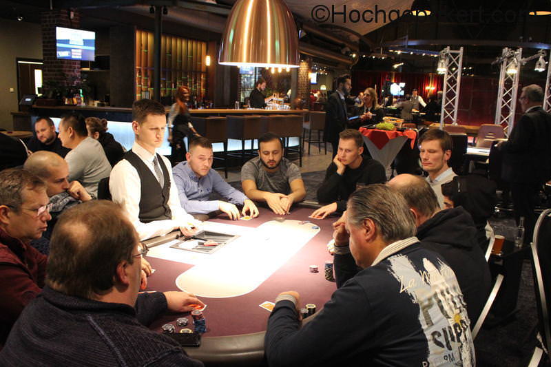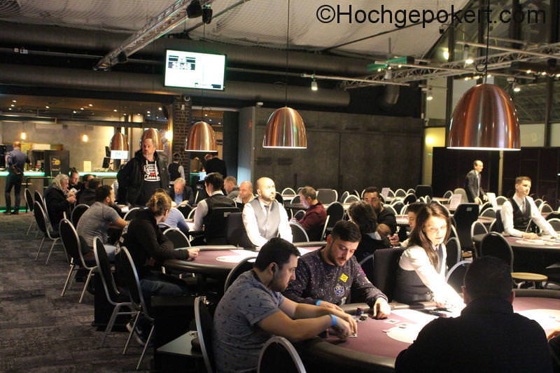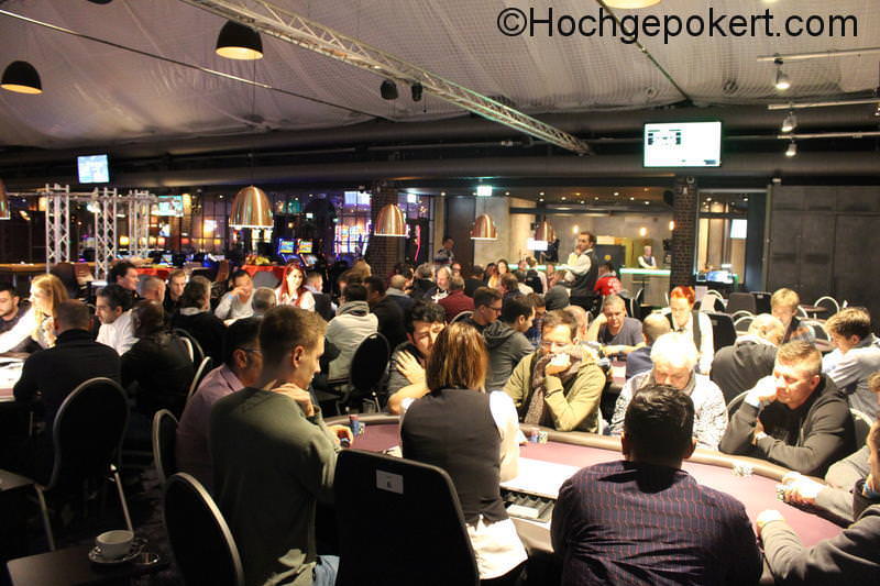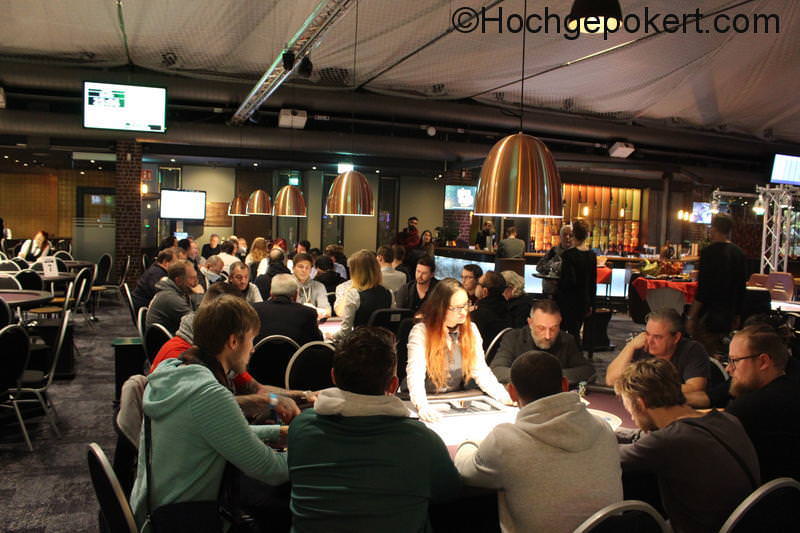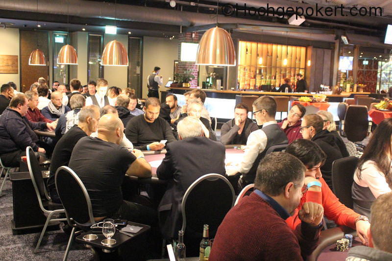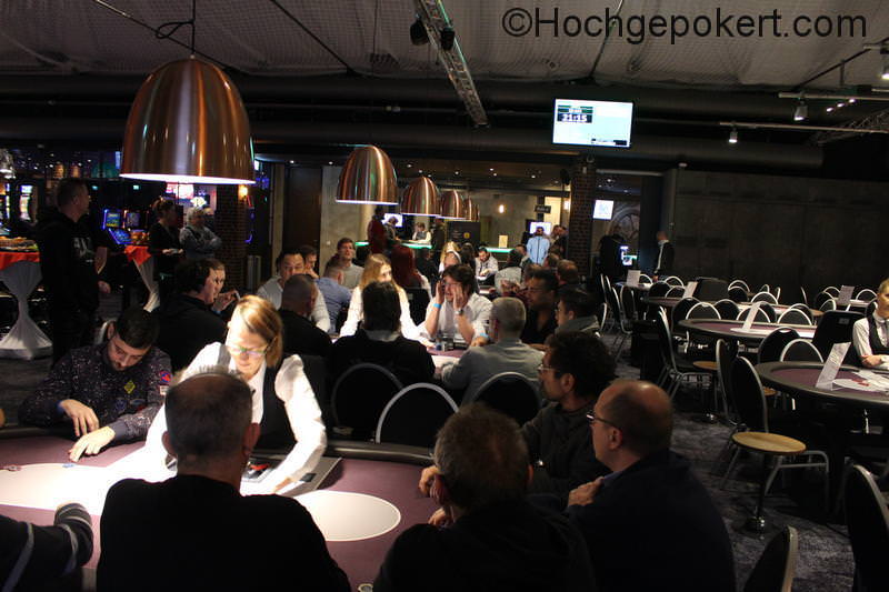 Am Donnerstag begann im Casino Schenefeld das €600+€60 Hochgepokert Masters Main Event. Schon am ersten von drei Starttagen Eins, fanden sich bis zum Ende der Late-Registration, 72 Pokercracks an den Tischen ein und mit zusätzlichen 15 Re-Entries liegen schon €49.590 im Preispool. Unter den Teilnehmer waren natürlich viele Hamburger- und Schenefelder Regulars. Zu den bekanntesten zählten wohl Ismael Bojang, Jan Meinberg, Reinhard Nack, Walid Abdi-Ali oder auch „Sonetschko“. Gespielt wurde mit einer Startdotation von 50.000 was unglaublichen 1.000 Big Blinds entsprach und die Spieler mussten 14 Levels à 30 Minuten überstehen.
