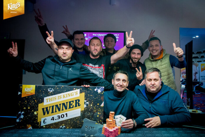 Am Sonntagabend wurde zum Abschluss des Spanish Poker Festival im King’s Resort Rozvadov das €100+€15 SPF Event #17 King’s Championship Turnier gespielt. Bis zum Ende der Late-Registration fanden sich 179 Spieler an den Tischen ein und hinzu kamen noch 65 Re-Entries, so dass ein Preisgeld von €23.180 unter den besten 27 ausgespielt wurde. Nach Mitternacht einigten sich dann die beiden Rumänen Florin Cojocaru und „A.C.“ auf einen Deal und Florin Cojocaru (ROM) durfte sich über den offiziellen Sieg und €4.301 freuen.