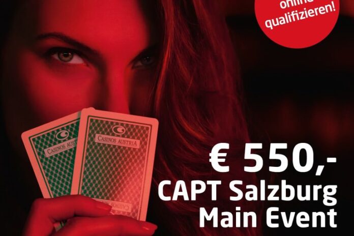 - € 500,- + € 50,- CAPT Salzburg Main Event: Von 17.02.2019 bis 07.04.2019 findet sonntags jeweils um 19.00 Uhr ein Qualifikationsturnier für das € 500,- + € 50,- CAPT Salzburg Main Event statt. € 20,- Rebuy. 1 Ticket garantiert.